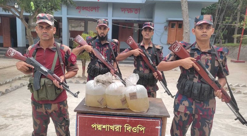 সাতক্ষীরায় বিজিবির অভিযানে গাঁজা ও চিংড়ি রেনুসহ ত্রিশ লক্ষাধিক টাকার মালামাল আটক